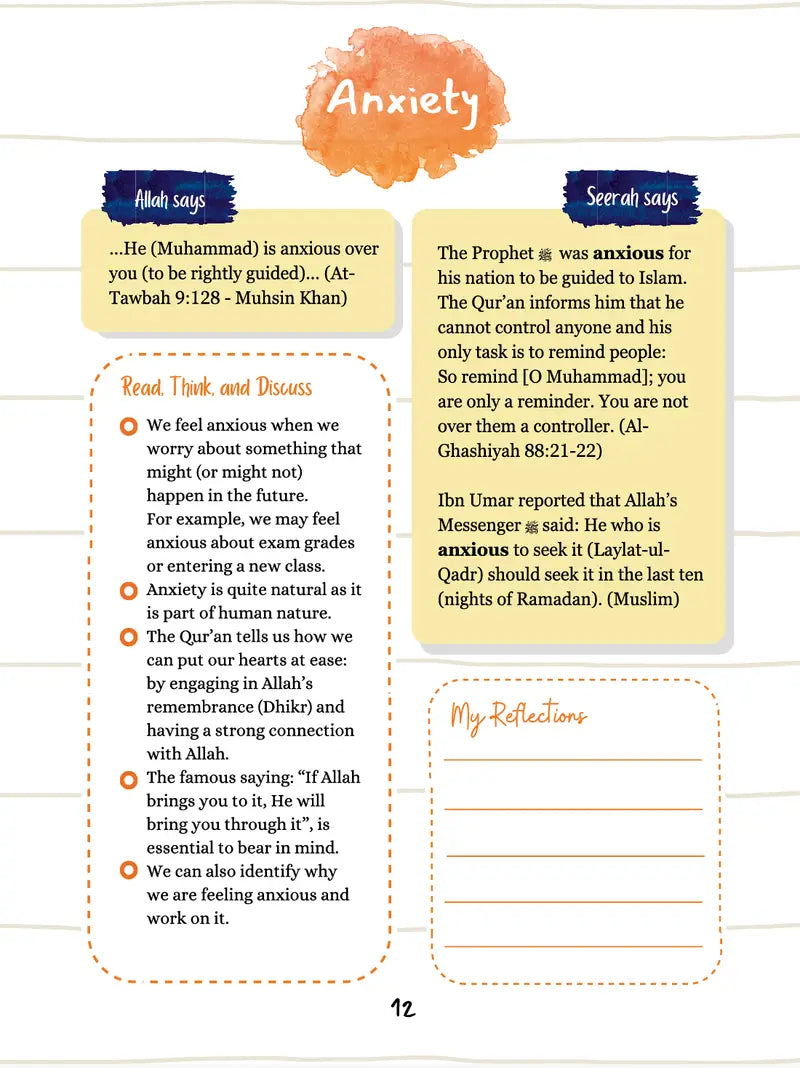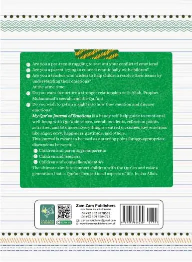 This journal helps individuals, including children and adults, explore and manage their emotions through the lens of the Qur'an, Hadith, and Seerah.